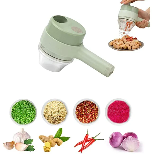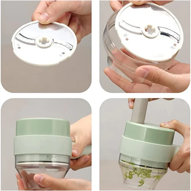 Nombreuses applications : notre broyeur de légumes portable est équipé de récipients fermés et non fermés, qui peuvent être commutés pour hacher et trancher l'ail, le gingembre, les poivrons, les lanières de viande, les saucisses, etc. trancher rapidement et facilement.