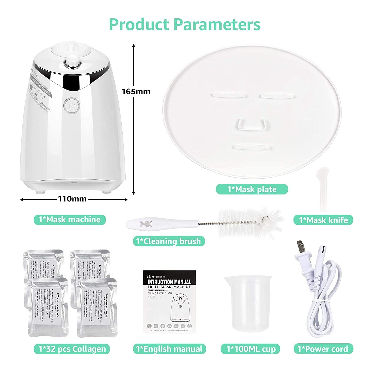 Note : Veuillez noter que l'appareil ne mixe pas les fruits et légumes. Veuillez préparer 20ml de jus avant de faire le masque et mélanger le avec de l'eau en proportion selon les instructions.
