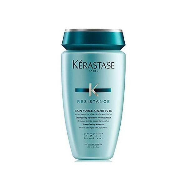 Revive cheveux fragiles avec Kérastase Resistance Bain Force Architecte, un shampooing fortifiant spécialement formulé pour nettoyer et fortifier les cheveux abîmés à des niveaux d'érosion 1-2.