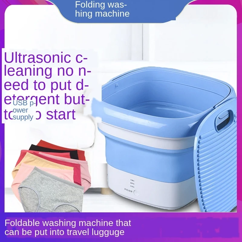 Mini Folding Washing Machine for Clothes Socks Underwear Household Dormitory Single Bucket Laundry Cleaning Washer with Drain Basket