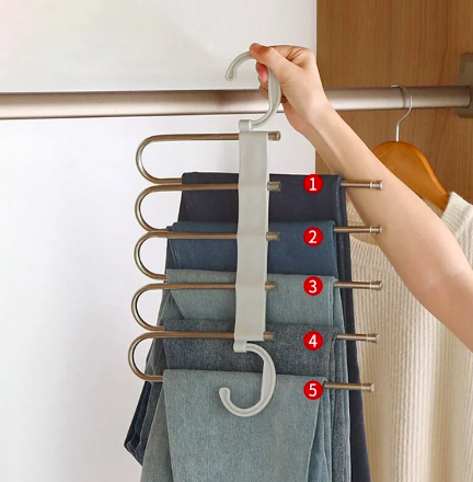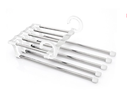 La conception 5-en-1 garde votre pantalon propre et bien rangé, économisant plus d'espace. Il y a deux crochets sur le dessus. Vous pouvez utiliser deux crochets pour la suspension horizontale ou simplement utiliser des crochets pour la suspension verticale. Cinq tubes en acier inoxydable sont utilisés, chacun pouvant être tiré vers l'extérieur pour une suspension et un recyclage faciles. Il peut également être utilisé comme étendoir. Fabriqué en acier inoxydable de haute qualité, il est résistant et facile à transporter. La conception 5-en-1 garde votre pantalon propre et bien rangé, économisant plus d'espace.
