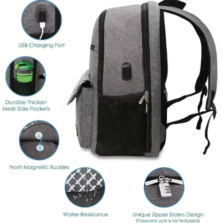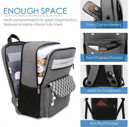Sac à dos pour ordinateur portable résistant à l'eau avec port de charge USB