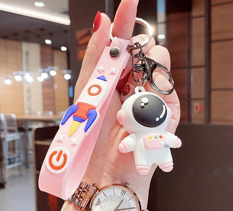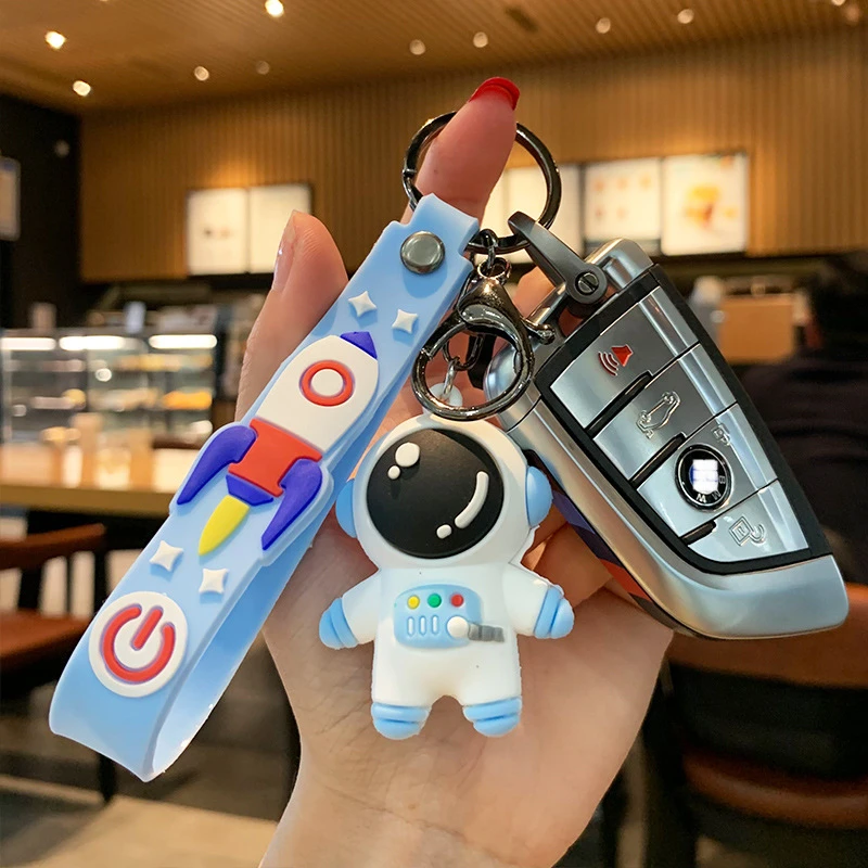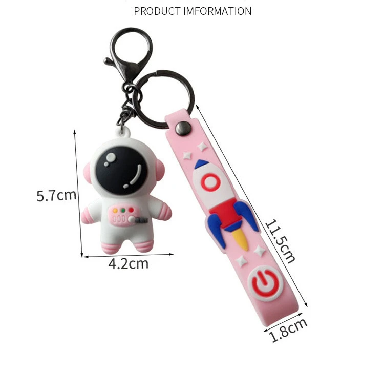 2 pièces porte-clés de dessin animé planète Tour astronaute mignon astronaute Couple chaîne en caoutchouc souple petit pendentif porte-clés pendentif