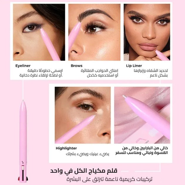كوني جاهزة للتجديد في أي مكان باستخدام قلم مكياج 4 في 1! يتوفر على على اربع درجات, اضغطي على اللون الذي تريدين استخذامه