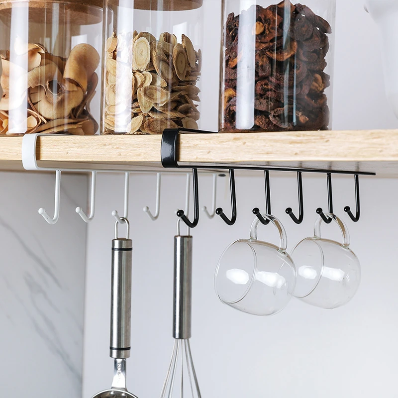 2pcs avec 6 crochets de suspension pour placard de cuisine, porte-gobelet, étagère de placard pour suspendre cuillère, gadgets de serviette, crochets de garde-robe pour cravate de ceinture