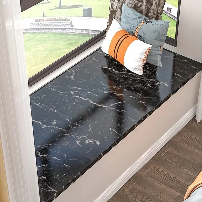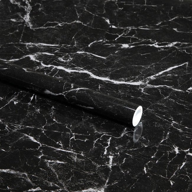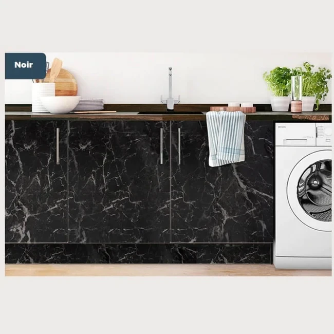 L'adhésif autocollant effet marbre noir, pour la rénovation de la cuisine et des murs de la maison.