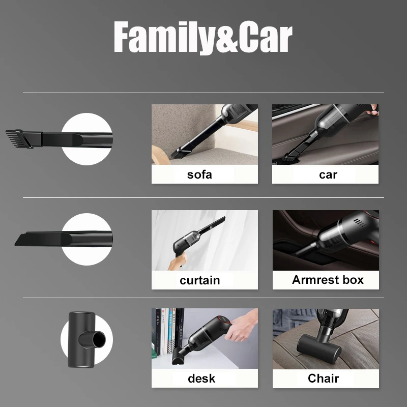 Grande aspiration de 8000Pa, peut fonctionner dans de nombreuses scènes, à l'intérieur de la voiture, bibliothèque, bureau