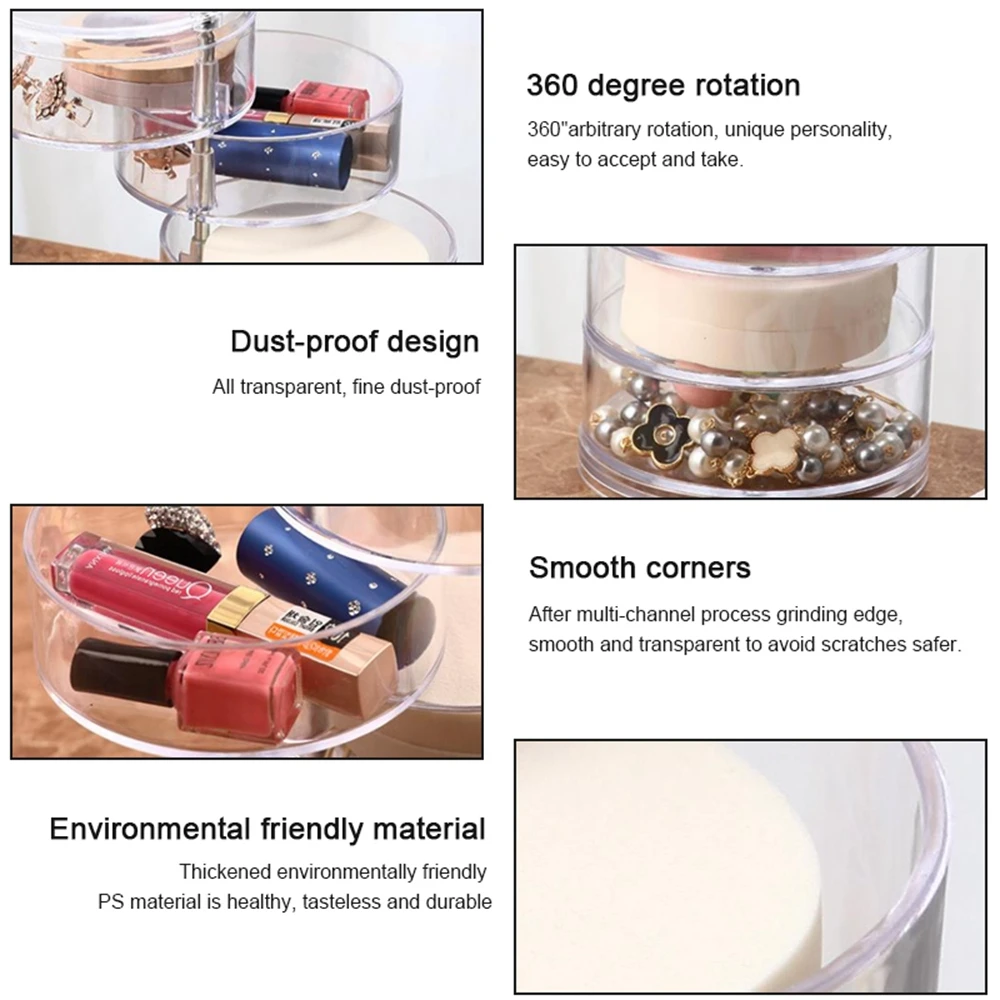 Rotation à 360 degrés ----Conception rotative à 360 degrés, accès facile à tous vos bijoux et petits accessoires de beauté. Super décoration pour la maison, rend le bureau plus artistique.