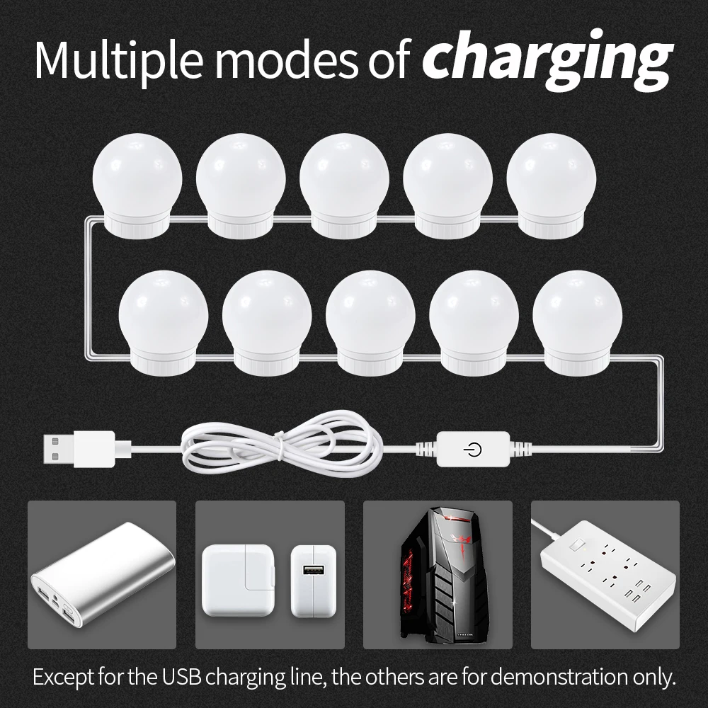 Conseils:L'ampoule du miroir de maquillage prend en charge plusieurs modes d'alimentation, mais elle ne comprend pas de piles.
