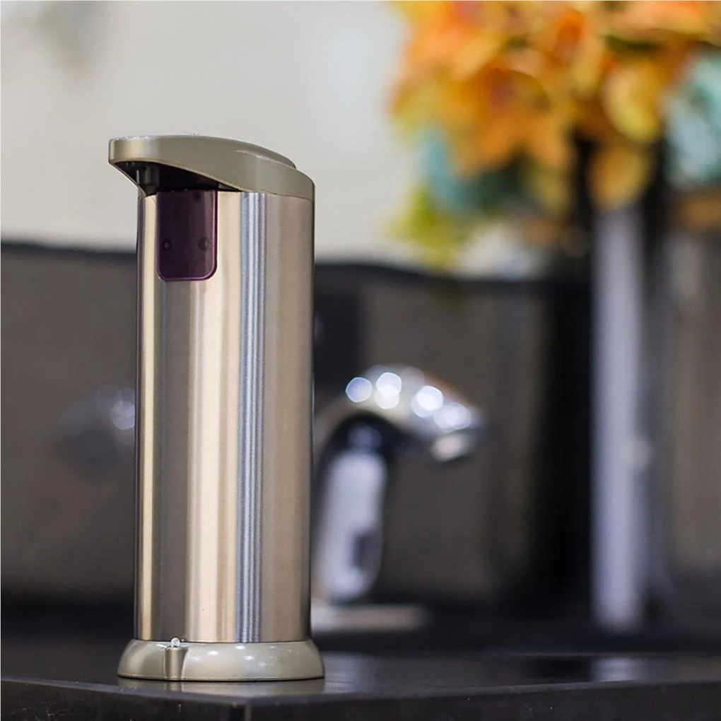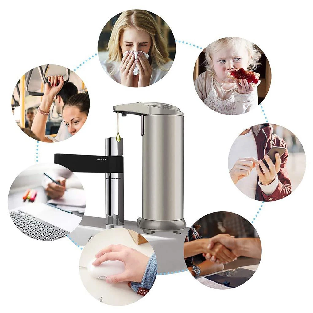 Grande capacité: le distributeur de savon est alimenté par 4 piles AAA (non incluses), qui peuvent supporter jusqu'à 6 mois de temps de travail sans remplacement fréquent des piles. De plus, 250ml de grande capacité peut répondre à votre utilisation normale.