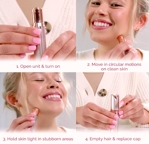 Petit et léger : cet appareil d'épilation est superbement conçu, seulement 4,13 pouces, comme un rouge à lèvres. Il peut être placé dans un sac à main, une poche, facile à transporter et peut être utilisé n'importe quand n'importe où, de sorte que vous puissiez toujours garder un visage impeccable. .