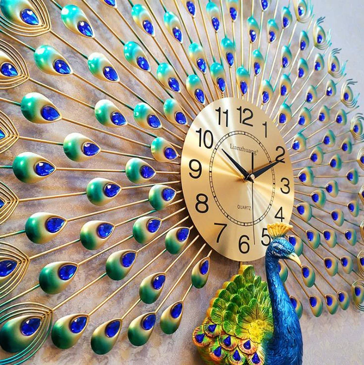 Horloge murale paon au Design moderne, décoration de la maison, salon chambre à coucher, horloge muette, horloges murales numériques en métal