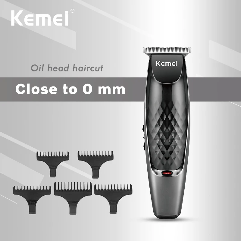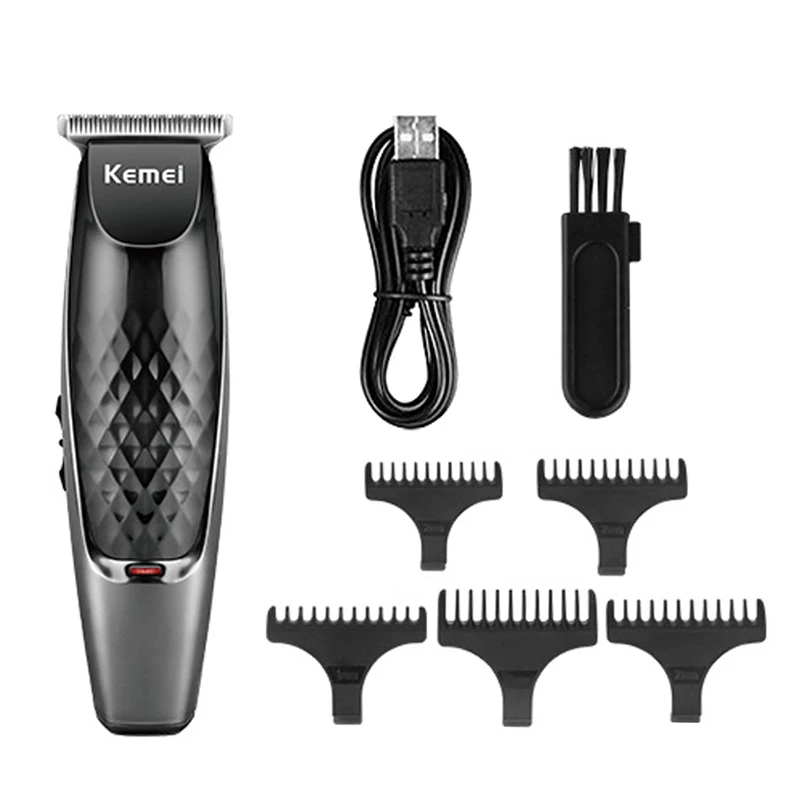 Kemei-máquina de cortar cabelo, recarregável, com 5 pentes, usb, cabo de dados android, interface dupla, corte de cabelo, cabeça de óleo, aparador 38d
