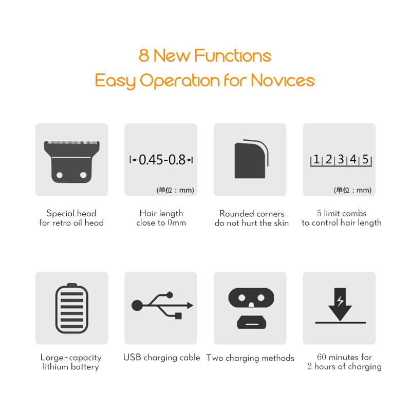 3. 1/2/3/4 / 5mm pentes de limite, com 5 pentes de limite, para fácil controle do comprimento do cabelo.