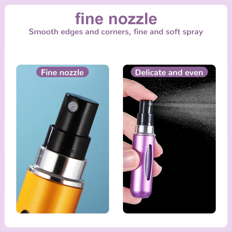 1. Le mini flacon pulvérisateur de parfum est petit et assez léger pour être mis dans votre poche ou votre sac à main, ce qui vous fait profiter d'un parfum merveilleux à chaque instant. Lorsque vous assistez à une fête, passez du temps en vacances ou en voyage d'affaires, c'est un excellent outil pour garder une odeur fraîche et vous donner confiance.