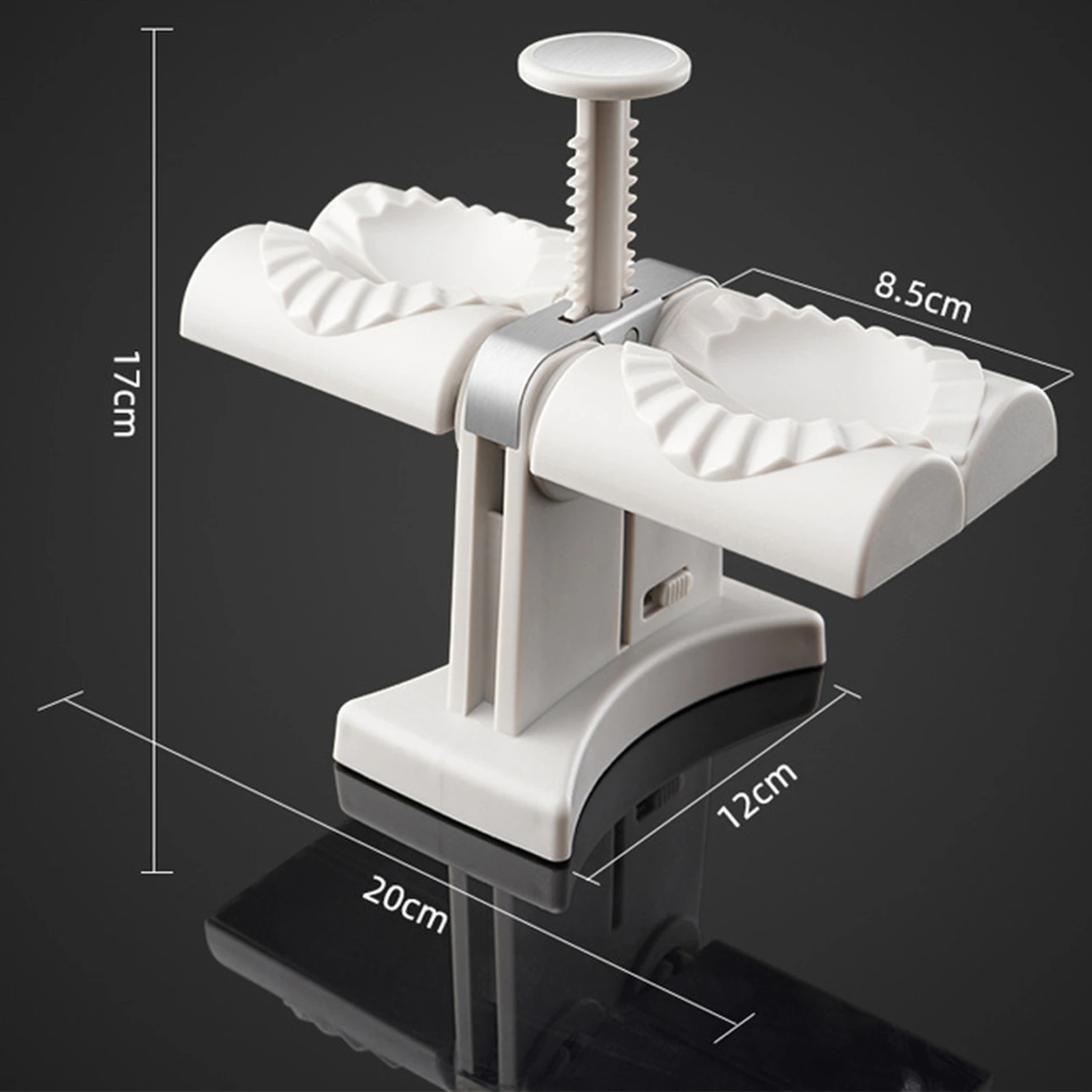 Machine à boulettes-envelopper deux à la fois, outil de pâtisserie automatique à Double tête, meilleurs ustensiles Ravioli dumplings, moule de presse d'emballage, accessoires de cuisine Caractéristique: Matériau de qualité alimentaire: fabriqué en ABS de haute qualité + acier inoxydable 304, il est robuste et durable, et le coussin antidérapant de base est stable. Il est facile à utiliser et à nettoyer, il suffit de rincer la farine à l'eau. Faire des boulettes: vous avez toujours peur de faire des boulettes? Vous devez contrôler la forme et la force de vos mains chaque fois que vous faites des boulettes, mais chaque boulette est différente. Avec cette machine à boulettes, ce problème peut être parfaitement résolu, vous permettant de faire rapidement plus de boulettes sans avoir besoin d'attendre beaucoup pour votre famille. Facile à utiliser: cette nouvelle machine à boulettes améliorée peut en emballer deux à la fois et faire plus de boulettes rapidement. Même si vous êtes débutant, cette machine à boulettes vous permet facilement de faire de belles boulettes ondulées en peu de temps sans aucune hâte. Mode d'emploi: 1. Ouvrir le dispositif de déverrouillage latéral de la machine à boulettes; 2. Poser la peau des boulettes et mettre le remplissage; 3. Appuyer sur la poignée vers le bas. 2 boulettes peuvent être faites et pressées en même temps. Profitez du temps de bricolage: vous pouvez bricoler des boulettes avec votre famille et vos amis à la maison ou lors de fêtes, tout en améliorant la capacité pratique de votre enfant, et il ne faut pas beaucoup de temps pour en faire, ensuite, profitez du plaisir de préparer vous-même de délicieux plats faits à la main, passez un moment heureux.