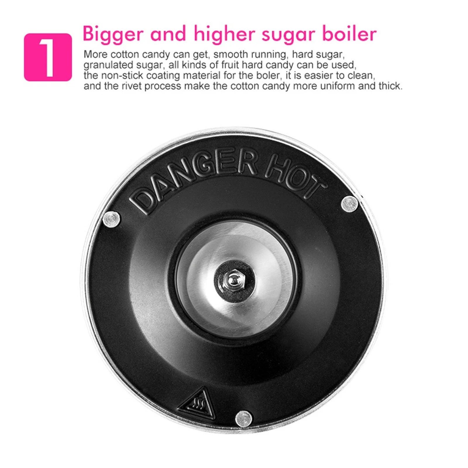 Il suffit d'ajouter du sucre ou du sucre granulé dans la machine, après le chauffage, il coulera à la forme de coton. Il a des performances stables et durables, un faible coût, sans risque, facile à utiliser.