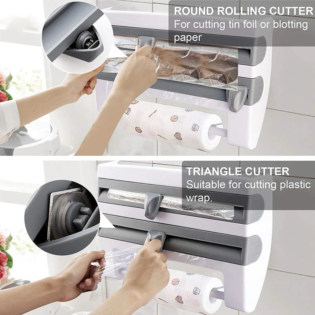 Porte-papier mural 3 en 1, distributeur multifonction, support de rouleau de cuisine et coupe-Film à feuille