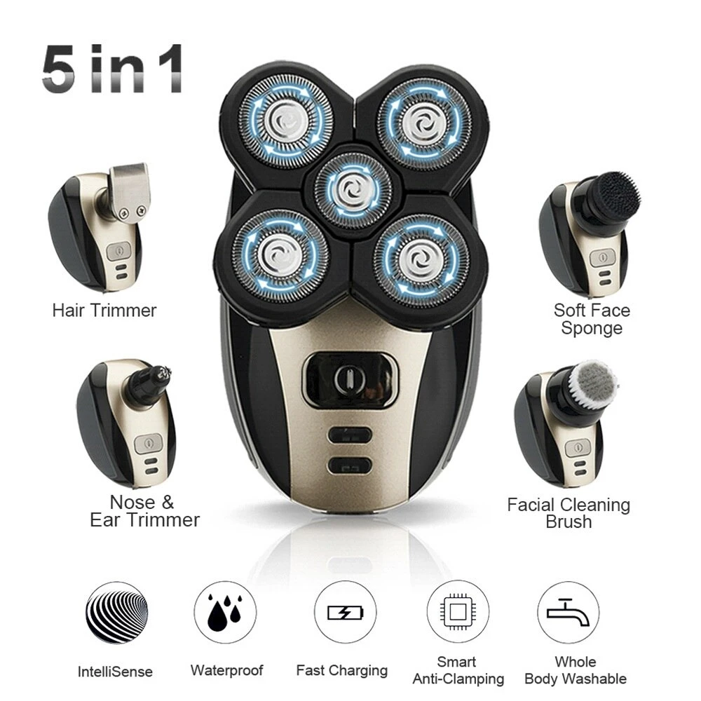 5 en 1 4D hommes Rechargeable tête chauve rasoir électrique 5 têtes flottantes barbe nez oreille cheveux tondeuse rasoir tondeuse brosse faciale