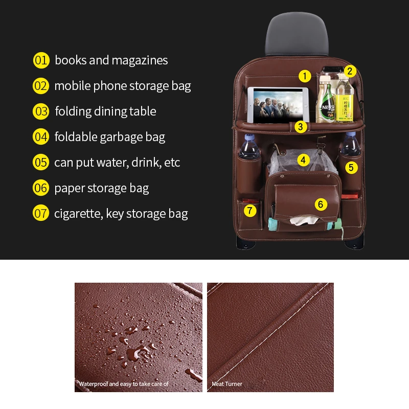 • 【Cuir imperméable et facile à installer】-fabriqué en matériau imperméable en cuir, il ne doit être nettoyé qu'avec un chiffon humide, ce qui est très pratique. Et cet organisateur de siège arrière de voiture est facile à installer, vous pouvez terminer l'installation en 3 minutes.