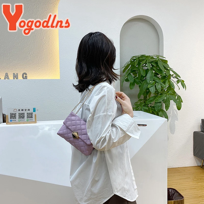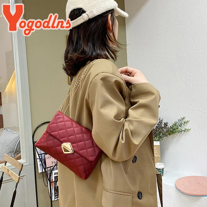 Yogodlns – sac à main en cuir PU pour femmes, sac à bandoulière avec chaînes, Simple, petit, sacoche de styliste à rabat